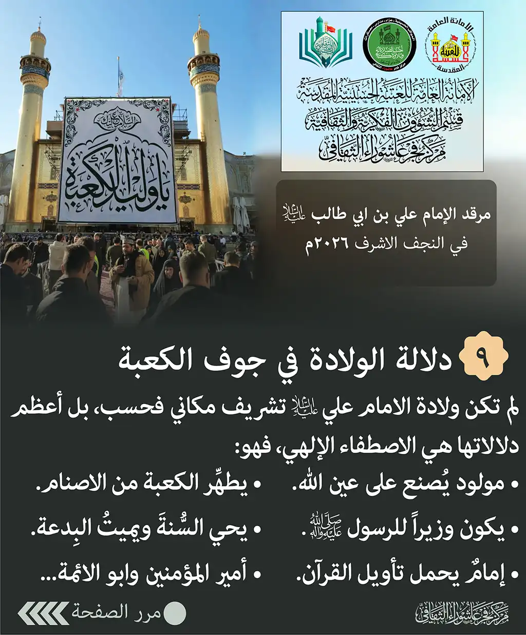 دلالة الولادة في جوف الكعبة – لم تكن ولادة الامام علي (ع) تشريف مكاني فحسب، بل أعظم دلالاتها هي الاصطفاء الإلهي، فهو: