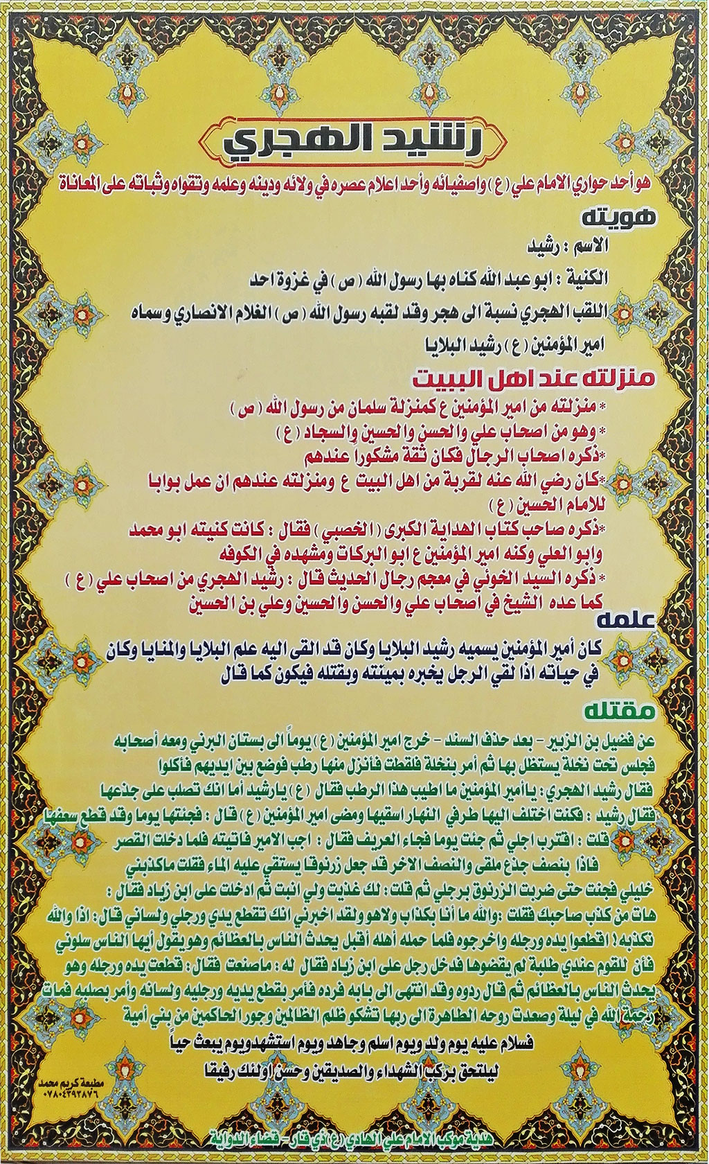 اولا: زيارة الشهيد العالم رُشيد الهجري (صاحب امير المؤمنين(ع)) :