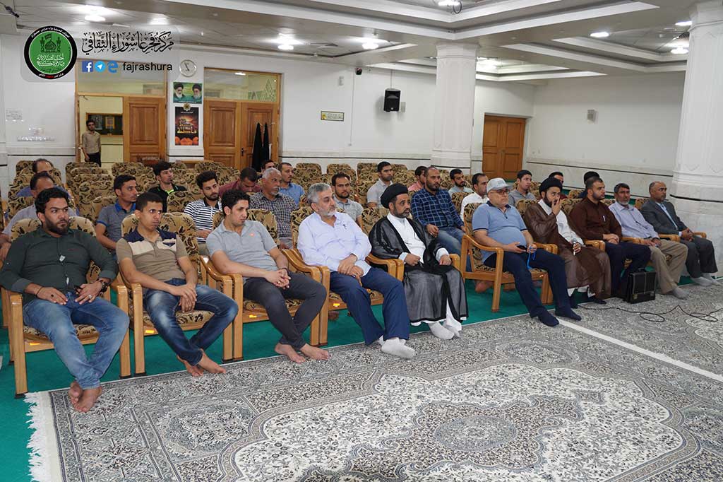 استهل سماحته حديثه مرحبا بالوفد وأثنى على أهمية دور الشباب في هذه المرحلة وضرورة أن يتعبأ الشباب بالثقافة الدينية السليمة، كما أشاد بالدور المهم الذي يقوم به مركز فجر عاشوراء الثقافي باشراف سماحة العلامة المحقق السيد سامي البدري (دام عزه) على مستوى الساحة المعرفية والثقافية العراقية في هذا الجانب بواسطة مختلف النشاطات والاصدارات.